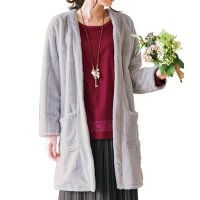 フェイクファーコーディガン 洗濯機OK 4L レディースファッション コート ジャケット
