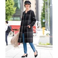 チェック柄ウール混コート 4L 5L 6L|1492-809564