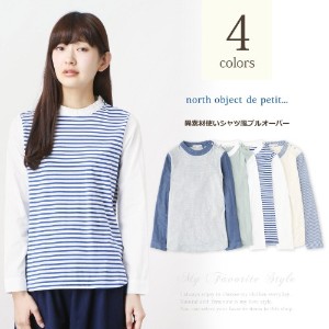 異素材使いシャツ風プルオーバー ノースオブジェクト プチ north object de petit... 配色カットソーコーディガン