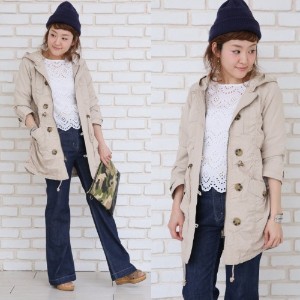 身頃の切替えにギャザーを寄せて、表情たっぷりに仕上げたミリタリーコート。フードは取り外し可能なので、着こなしや気分に合わせてアレンジが楽しめます。ウエストと裾のドローストリングで、シルエットに表情をつけても◎。おしゃれ心をくすぐる、ドット柄の裏地もこだわりです。 …