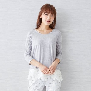 裾レース使いTシャツ ナチュラル レース使いショール風カットソーカーディガン ファナカ Fanaka