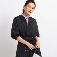 【デザイン】涼しげで落ち感のあるシャツ素材でお作りした、ストライプ柄のジップアップブルゾン。ボトムインしてブラウスのようにも着ていただけます。ジップを開けて羽織としての着用もおすすめです。【生地感】さらっとした肌触りで心地よく着用いただけます。サイズ違いの商品もご用意しております。R:127-48063 L:127-48763※こちらは『メーカー取寄せ商品』のため、ご注文いただいてから在庫確認をいたします。その結果、売り切れとなってしまう場合がございます。また倉庫からの出荷に通常3〜5日かかります。予めご了承ください。※ご購入可能な色・サイズ・タイプは、”在庫・価格を一覧でチェックする”でご確認ください。
